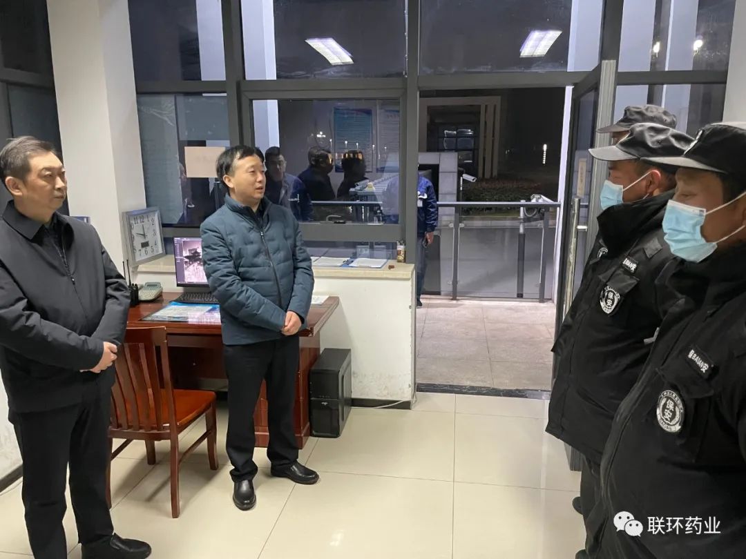 全體堅守崗位的員工和安保人員紛紛表示感謝領導的慰問,他們將嚴格執行值班值守計劃,從嚴從細從實做好相關工作,確保節日期間的安全穩定,為聯環藥業度過一個平安祥和的春節貢獻自己的一份力量。